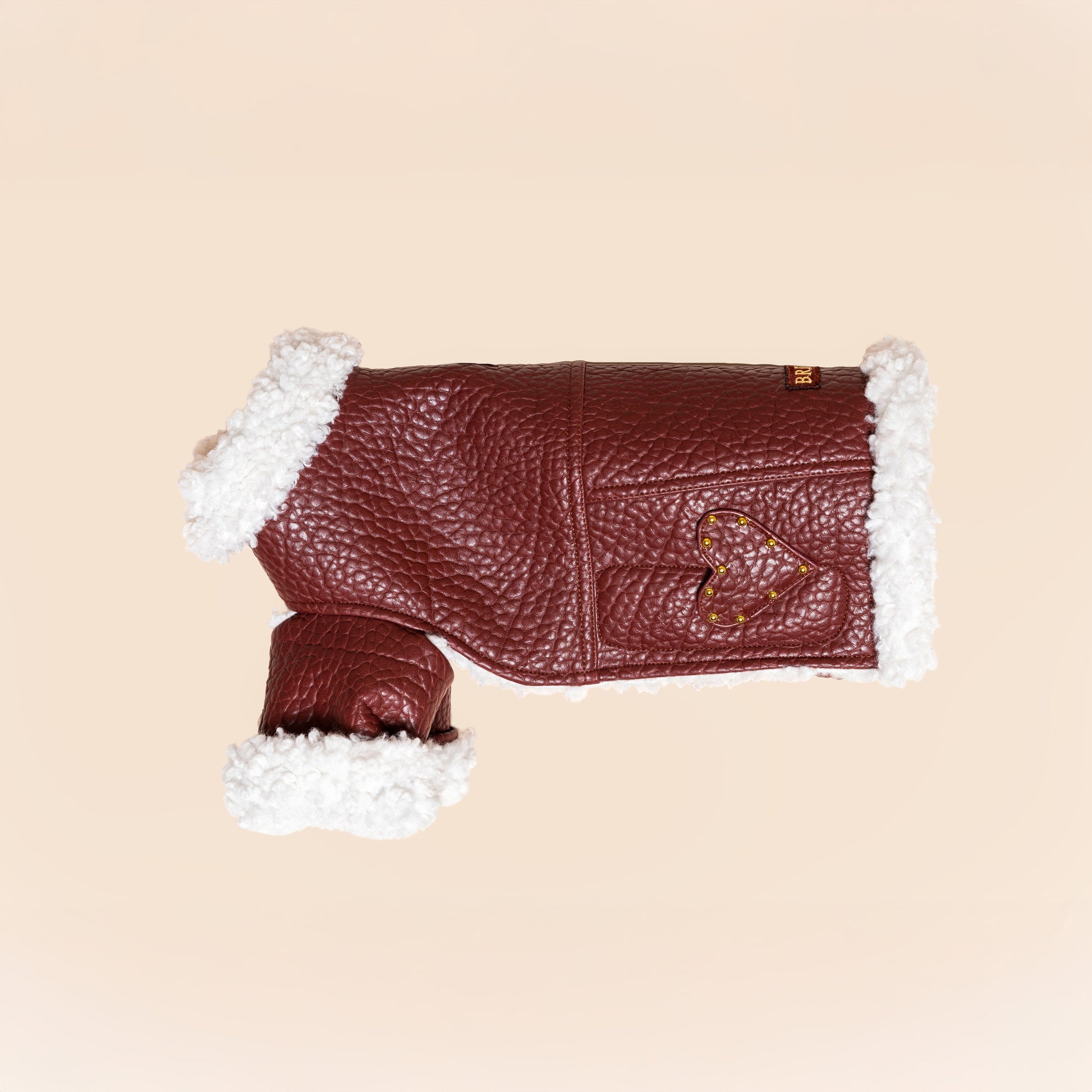 The WILD CHERRY collection’s bold new arrival — the Chearry Cherry Jacket — brings the spirit of classic biker fashion into the world of dog couture. The deep burgundy, subtly textured fabric paired with a contrasting soft faux-fur lining radiates both strength and elegance, while keeping your pup warm and cozy on chilly days.